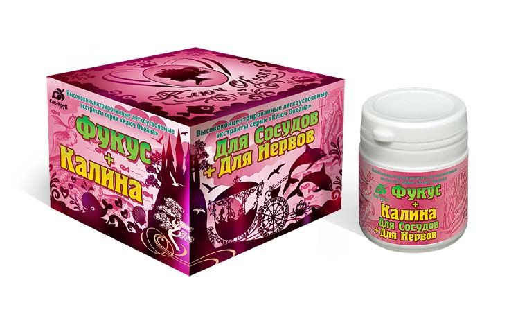 Экстраты из гидробионтов серии Ключ Океана, экстрат Фукус+Калина для сосудов+для нервов , 18гр