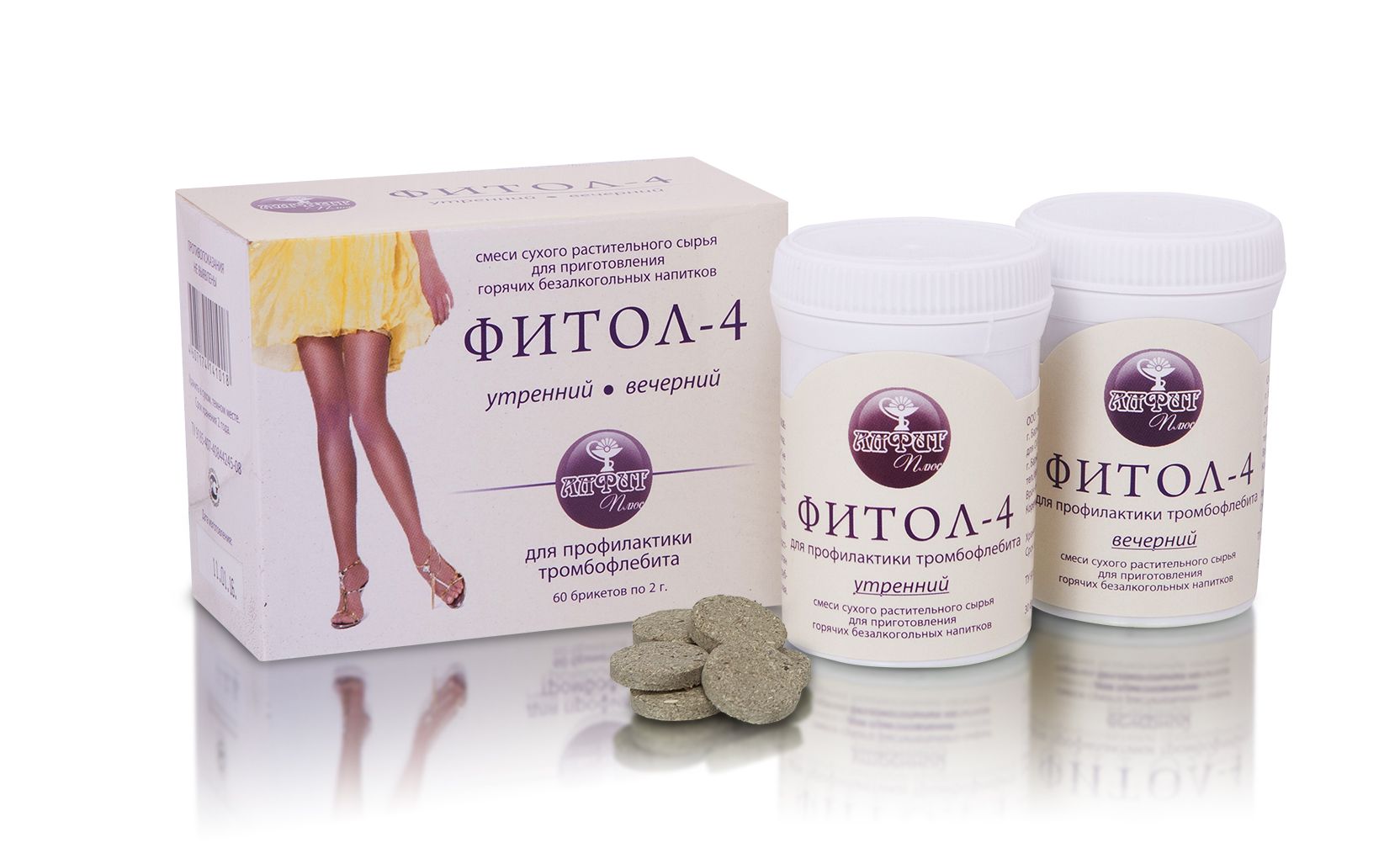 ФОРМА ВЫПУСКА - 30 брикетов по 2 грамма, упакованных в полиэтиленовые банки с захлопывающимися крышками. 1 стандарт комплектуется из 2 банок: "Фитол-4"утреннийи "Фитол-4"вечерний.