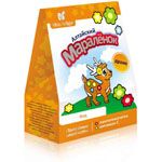 Рекомендуется детям для нормализации работы щитовидной железы, способствует нормализации обмена веществ, ускорению умственного развития, укреплению иммунитета. Находящийся в составе драже пантогематоген способствует повышению физической работоспособности, улучшению работы мозга, памяти. Состав: Сахар-песок, патока крахмальная, какао-порошок, валериана лекарственная, листья мяты перечной, трава и листья полыни горькой, ромашка аптечная, шиповник майский плоды, вода питьевая, кислота аскорбиновая, пантогематоген сухой, тальк молотый, масло растительное, воск пчелиный, парафин твердый, калий йодистый. Рекомендации по применению в сутки: 3-6 лет — 5 драже; 7-11 лет — 7 драже; 12-17 лет — 10 драже. Условия хранения: Хранить при температуре 18±3°С и влажности не более 75%. Срок годности: 12 месяцев. Масса нетто: 70 г. Количество драже: 145±10 шт.