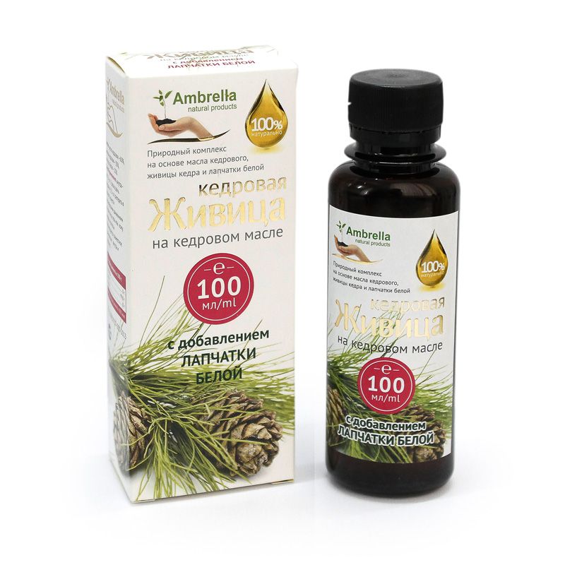 Состав: масло кедровое — 60%, кедровая живица — 30%, трава лапчатки белой — 10%.