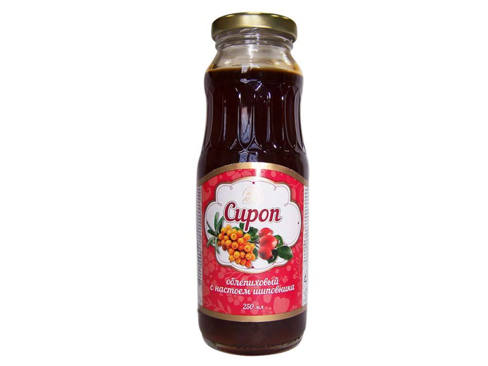 Облепиховые сиропы на основе натурального сока облепихи с добавлением настоев сибирских ягод благотворно влияют на организм человека, повышают сопротивляемость организма к воздействиям неблагоприятных факторов окружающей среды. Сироп облепиховый с настоем шиповника обладает уникальным составом, оказывающим благотворное влияние на организм человека. Сироп поддерживает и укрепляет иммунитет к инфекционным и простудным заболеваниям, увеличивает физическую работоспособность. Купаж сиропа облепихового с настоем шиповника придает продукту особенно привлекательный вкус и витаминную ценность.