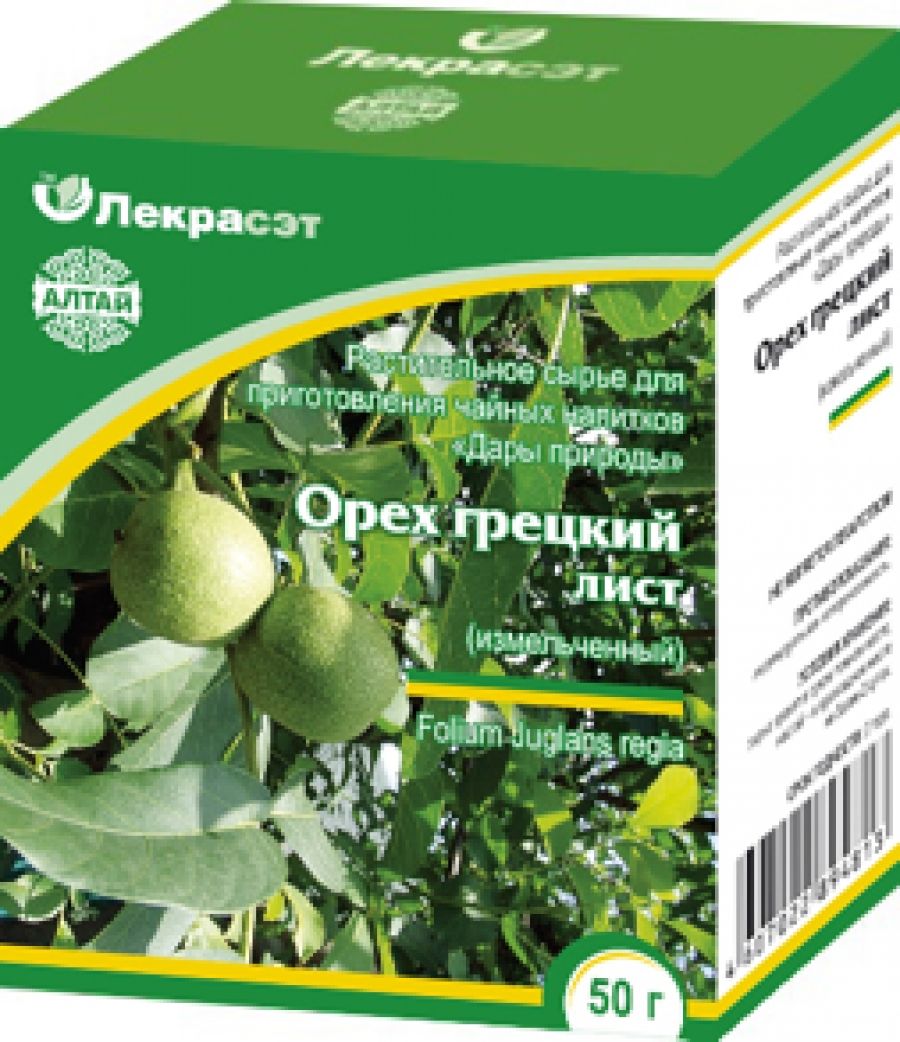 Листья грецкого ореха используются как противовоспалительное, общеукрепляющее, вяжущее, ранозаживляющее, противоопухолевое действие. Рекомендуется при авитаминозах, истощении организма, гастритах, колитах и энтероколитах, сопровождающихся поносами, фурункулезе, мочекаменной болезни, сахарном диабете, желтухе, диатезе, подагре, как кровоостанавливающее и глистогонное средство.