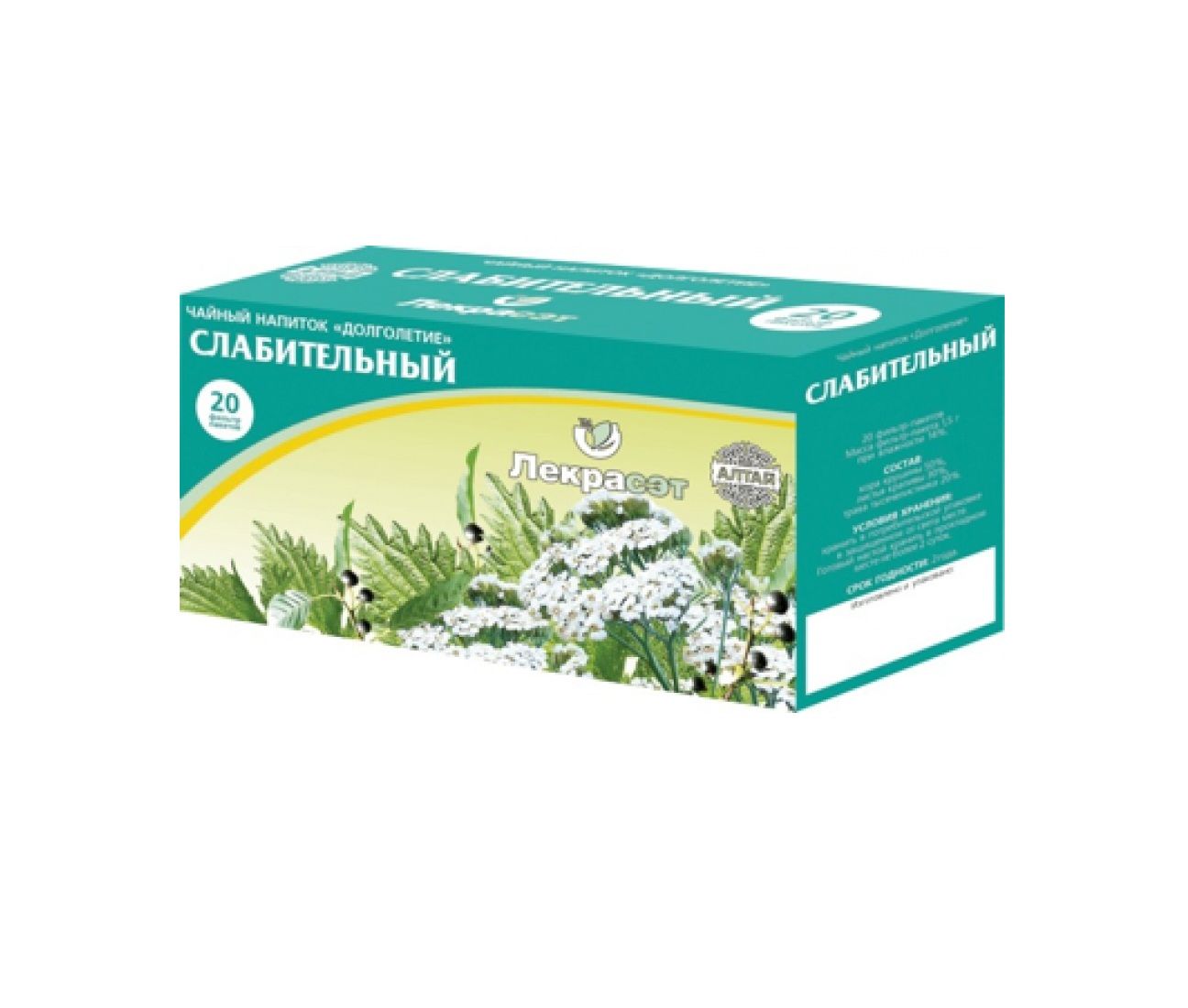 Состав: кора крушины 50%, листья крапивы 30%, трава тысячелистника 20%.