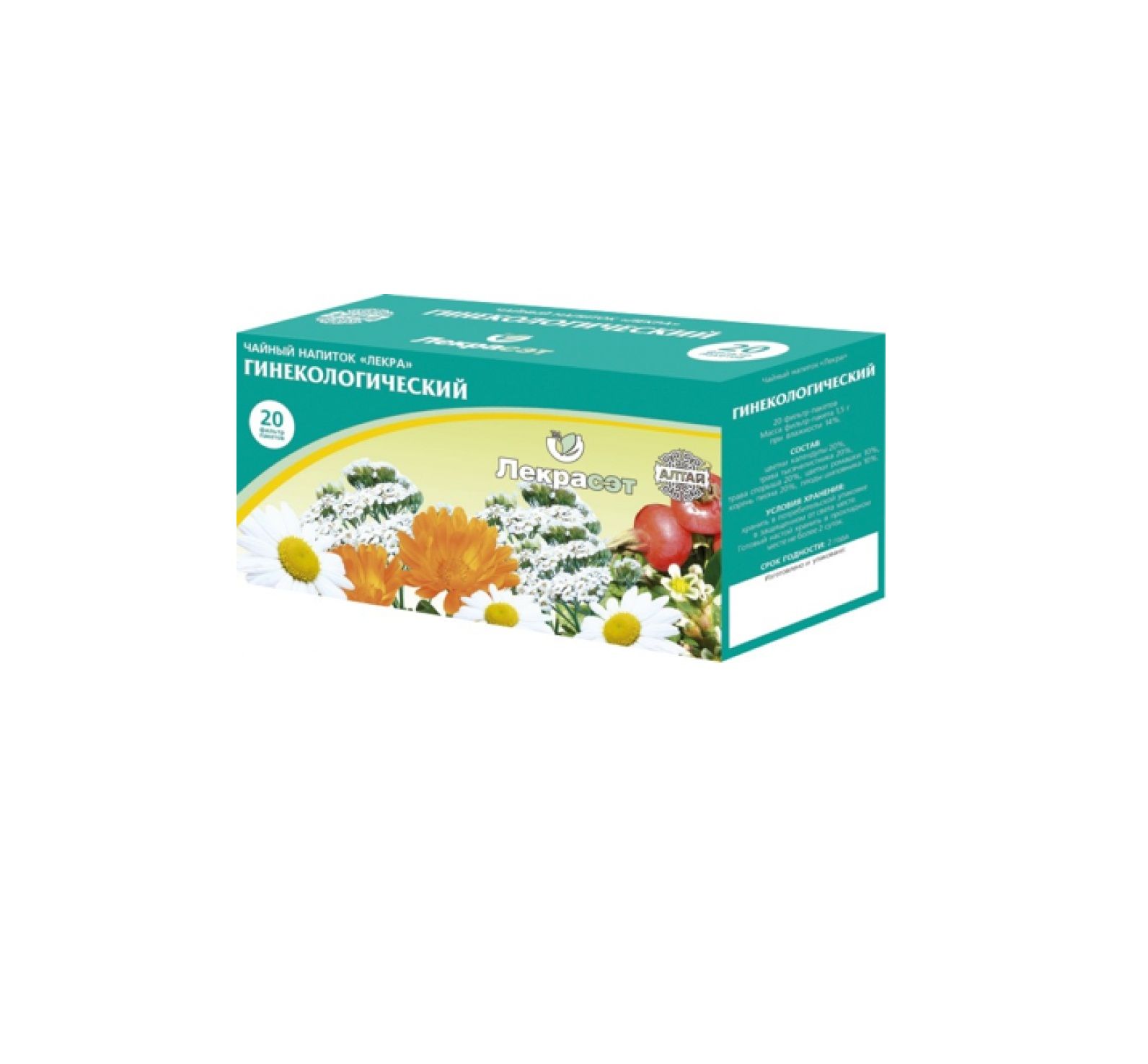 Состав: цветки календулы 20%, трава тысячелистника 20%, трава спорыша 20%, цветки ромашки 10%, корень пиона 20%, плоды шиповника 10%.