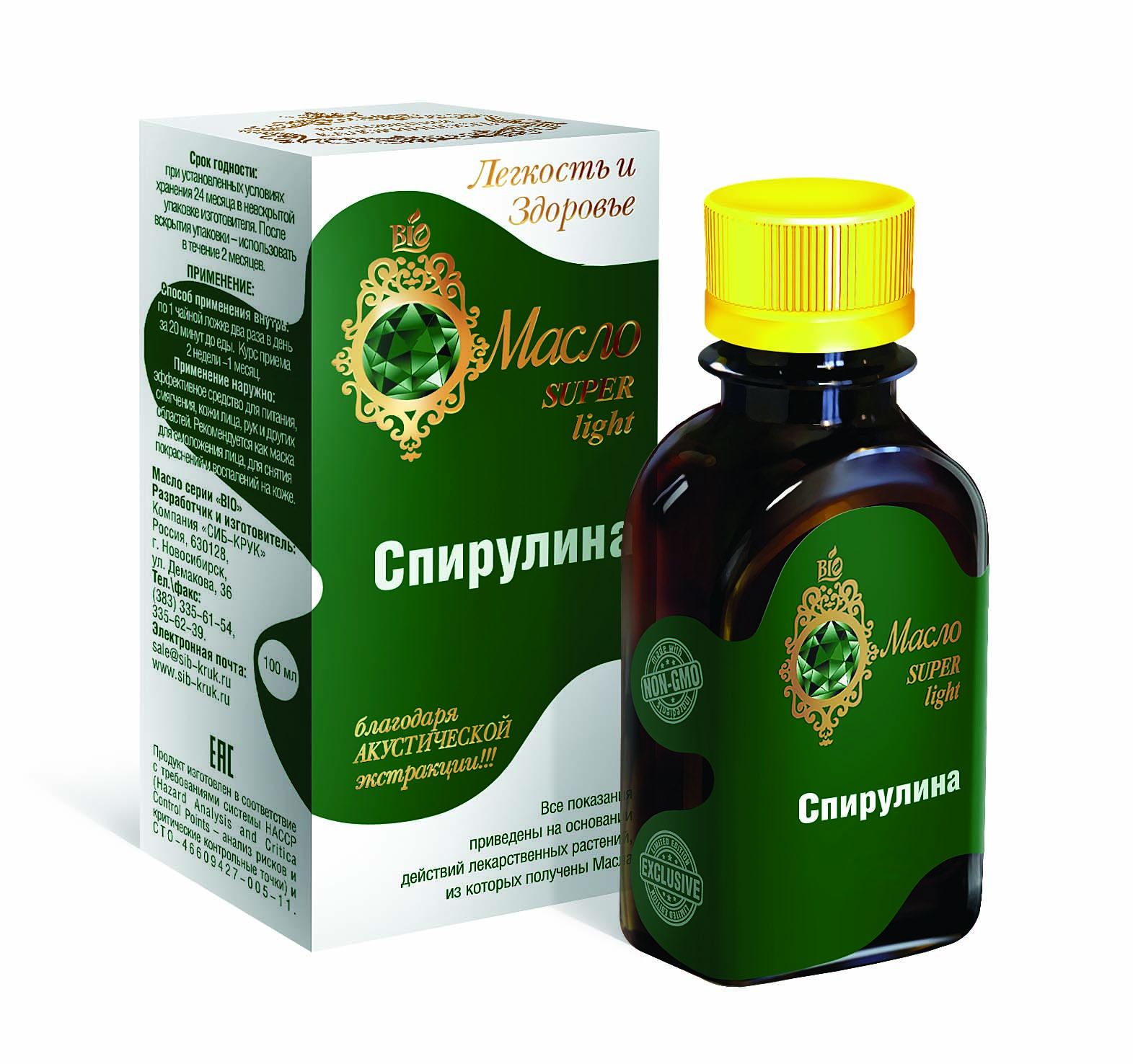 СОСТАВ: Масло Спирулины 100%, полученное с помощью акустической экстракции.