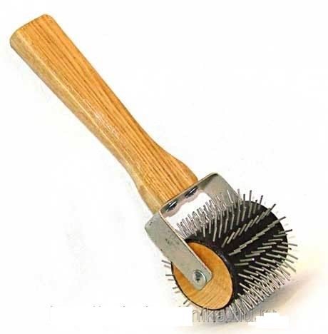 Материалы и элементы, используемые при изготовлении товара: валик для распечатывания сот "Ежик" представляет собой валик (из деревянной основы и пластмассовой трубки диаметром 50 мм), на поверхности которого надежно закреплены стальные иголки высотой 13 мм и диаметром 1 мм. Валик соединён с деревянной ручкой через П-образную металлическую оцинкованную пластину.