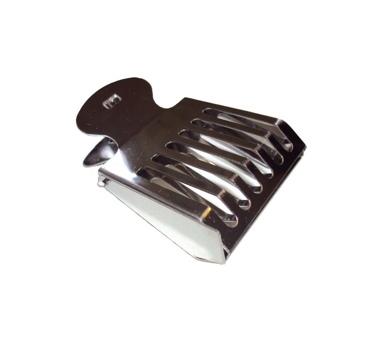 Клип для ловли матки из металла, пойманные пчелы свободно выходят через прорези, матка остается внутри. Легкая пружина и зазор спереди исключают повреждение матки.